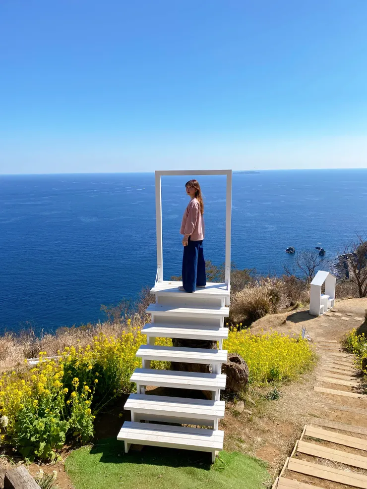 海を背景にしたフォトスポットが多くて平日でも写真を撮りたい人の行列がちょっとだけできていました!