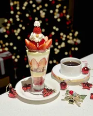 2025年3月21日グラングリーン大阪グラングリーン大阪 南館2階にオープンした『GOKAN PARLOIR(ゴカンパーラー)』さん🍰12月1日から期間限定のパフェが登場してますよ~✨クリスマス限定パフェ【冬苺のサンタパフェ】2,200円(税込)【有機栽培のコーヒー】660円ドリンクはセットだとここ