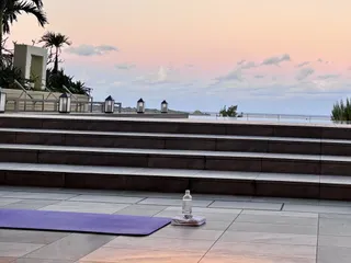 ホテルを丸っと、楽しむ時間 朝7時から行われるサンライズヨガ🧘♀️事前予約にて参加することができます。(開催時間は2回、6時と7時があります)オープンエアロビーで行われるため、空が明るくなる様子を感じながらヨガをすることができ、頭と体がスッキリ!この日は、ピンク色の朝焼けが見ることができて早起きした甲斐ありでした✨プールはオ